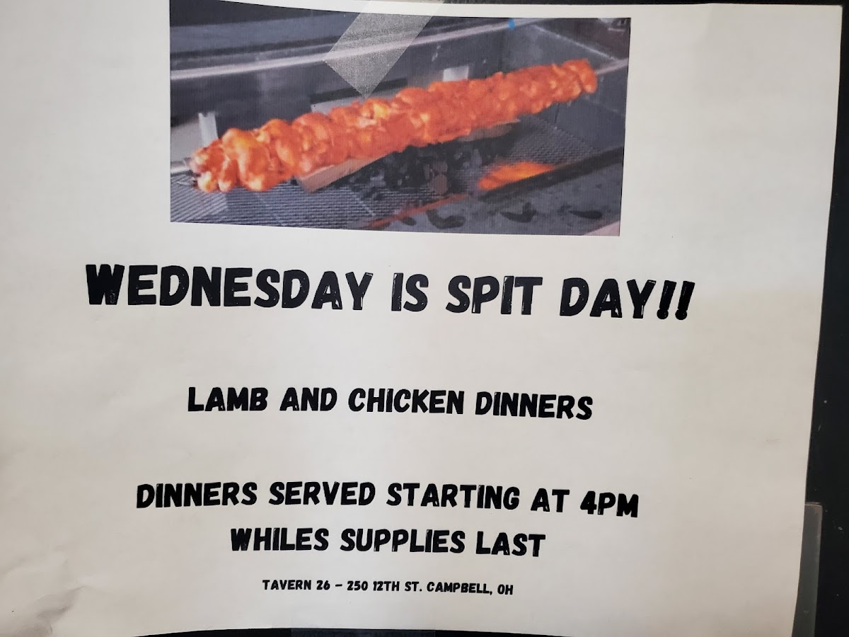 Tavern 26 Menu